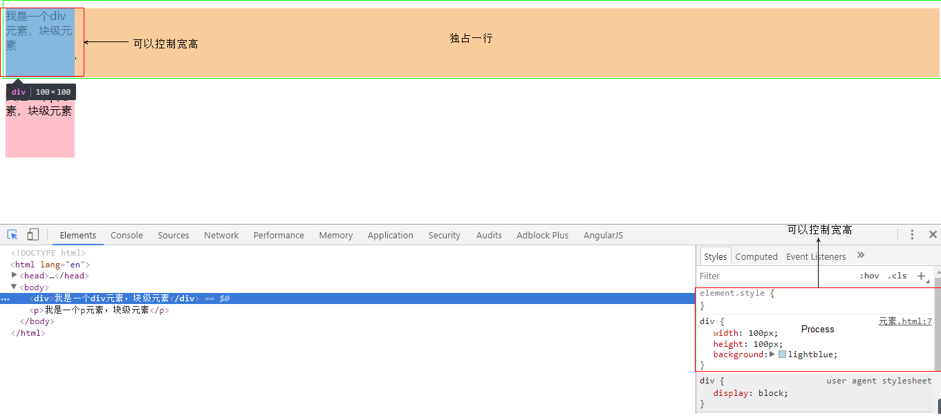(2)高度,宽度、外边距以及内边距都可以控制。