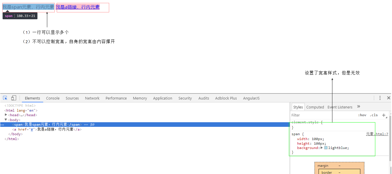 (1)相邻行内元素在一行上,一行可以显示多个。