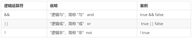 概念:逻辑运算符是用来进行布尔值运算的运算符,其返回值也是布尔值。后面开发中经常用于多个条件的判断