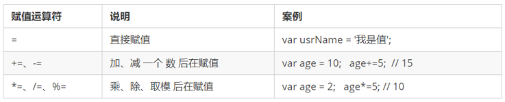 xxxxxxxxxxvar age = 10;age += 5; // 相当于 age = age + 5;age -= 5; // 相当于 age = age - 5;age *= 10; // 相当于 age = age * 10;