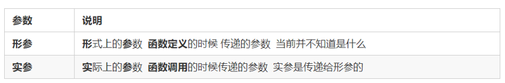参数的作用 : 在函数内部某些值不能固定,我们可以通过参数在调用函数时传递不同的值进去。