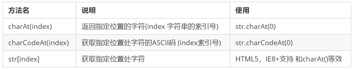 字符串通过基本包装类型可以调用部分方法来操作字符串,以下是根据位置返回指定位置上的字符: