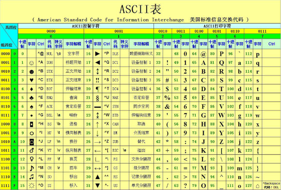在上述方法中,charCodeAt方法返回的是指定位置上字符对应的ASCII码,ASCII码对照表如下: