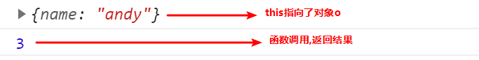xxxxxxxxxx Array.prototype.sum = function() { var sum = 0; for (var i = 0; i < this.length; i++) { sum += this[i]; } return sum; }; //此时数组对象中已经存在sum()方法了 可以始终 数组.sum()进行数据的求xxxxxxxxxx function fn(x, y) { console.log(this); console.log(x + y);} var o = { name: 'andy' }; fn.call(o, 1, 2);//调用了函数此时的this指向了对象o,