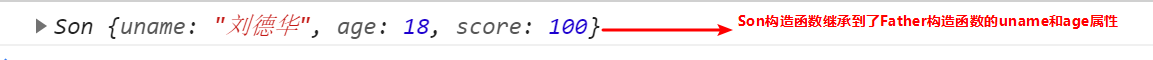 xxxxxxxxxx // 1. 父构造函数 function Father(uname, age) { // this 指向父构造函数的对象实例 this.uname = uname; this.age = age; } // 2 .子构造函数 function Son(uname, age, score) { // this 指向子构造函数的对象实例 3.使用call方式实现子继承父的属性 Father.call(this, uname, age); this.score = score;}var son = new Son('刘德华', 18, 100);console.log(son);