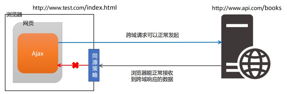 注意:浏览器允许发起跨域请求,但是,跨域请求回来的数据,会被浏览器拦截,无法被页面获取到!