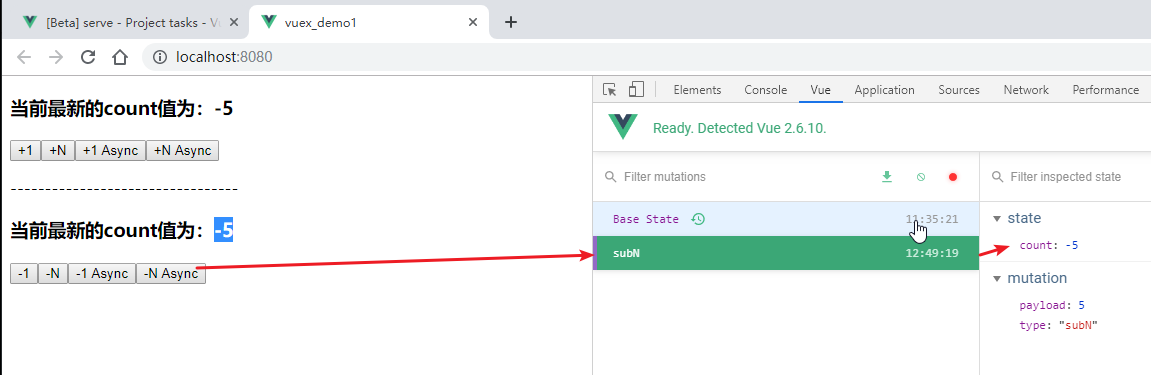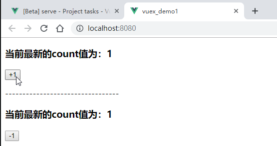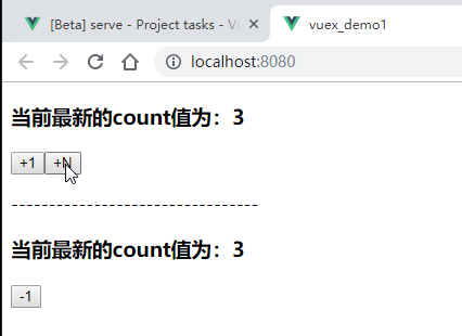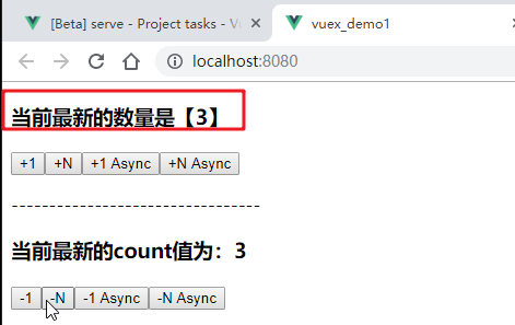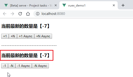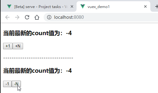 效果:点击一次-1按钮,再点击一次-N按钮,如下:
