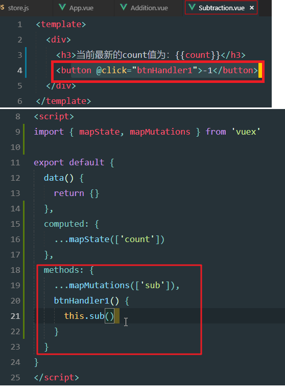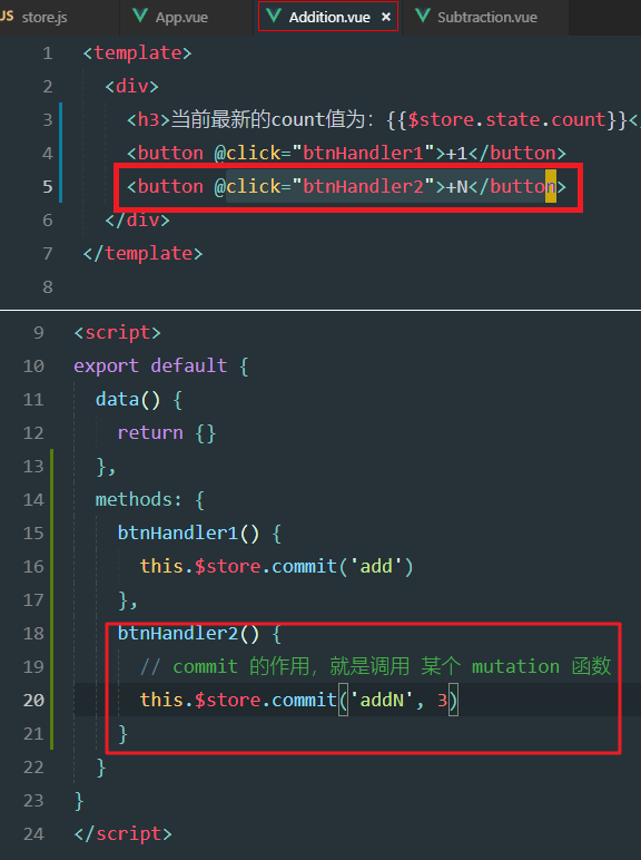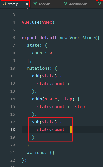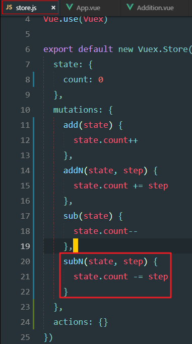 xxxxxxxxxxmethods: { add(state) { state.count++ }, addN(state, step) { state.count += step },}定义sub方法