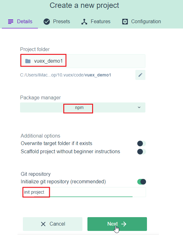 创建vuex项目
