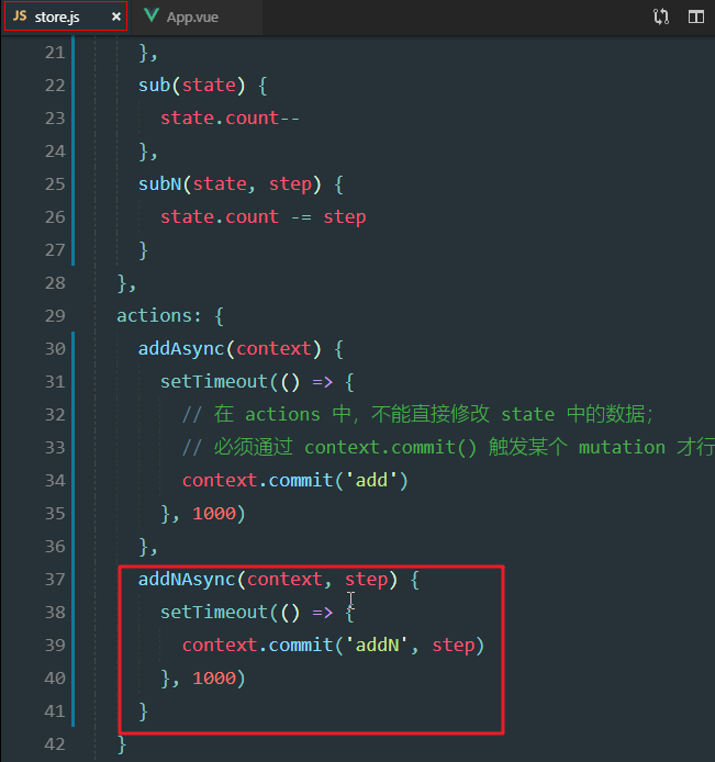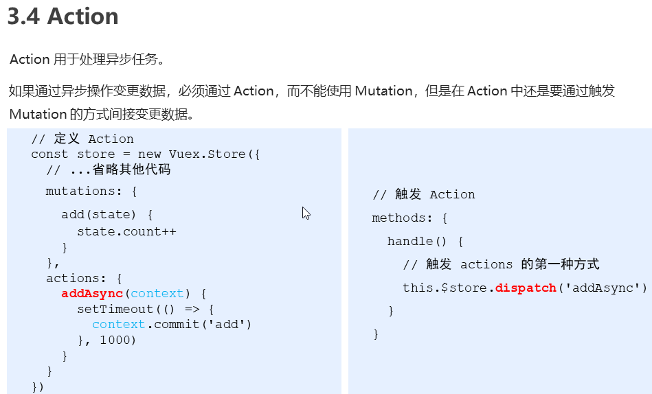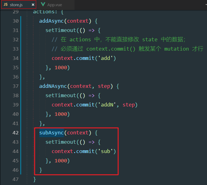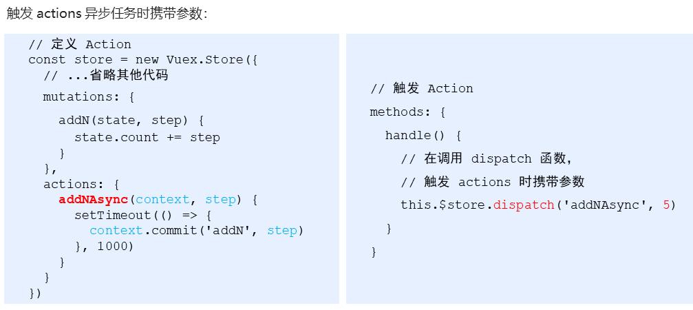 异步方法必须有一个参数,context,代表当前store实例对象