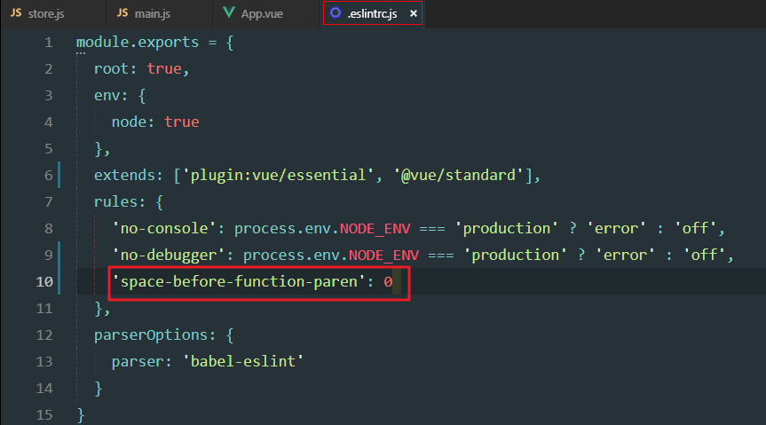 eslintrc.js中增加: