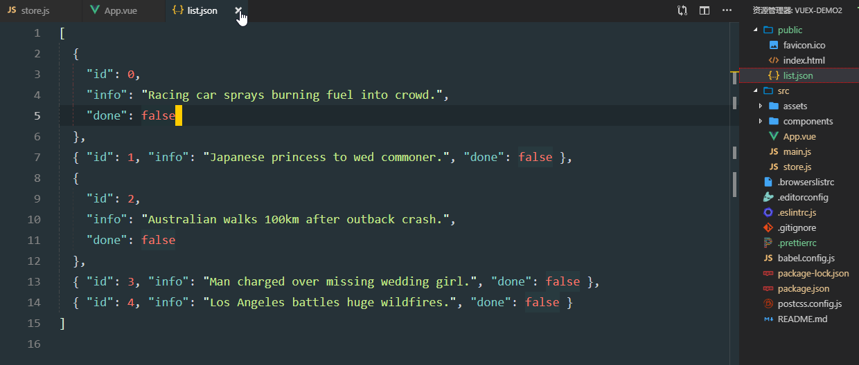 新建list.json,粘贴list数组数据