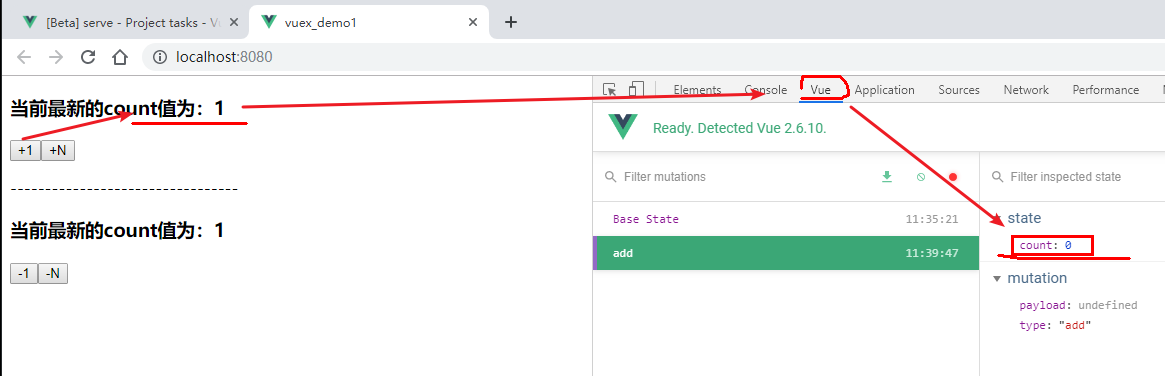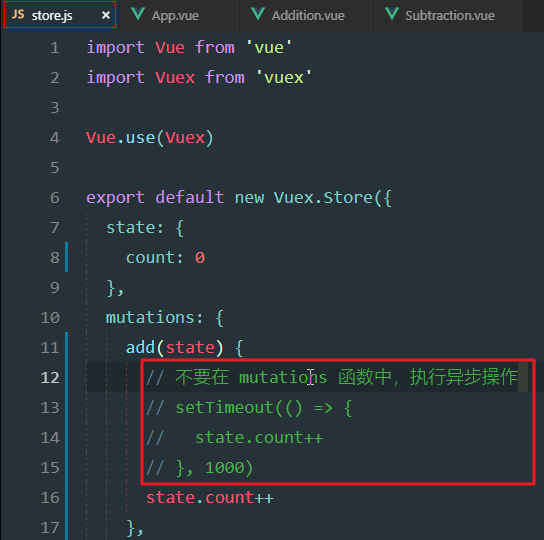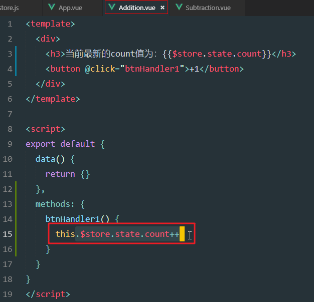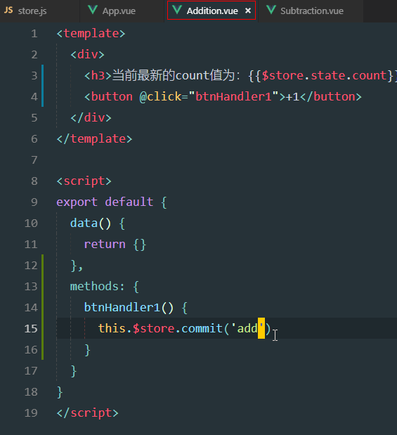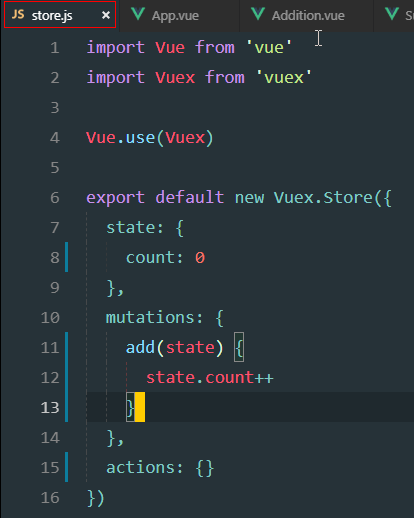 mutation中定义add方法,修改count