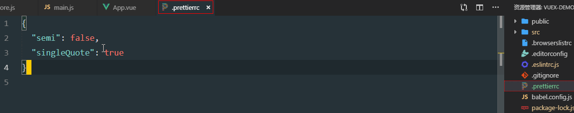 去除末尾分号,单引号:新建.prettierrc文件,增加如下