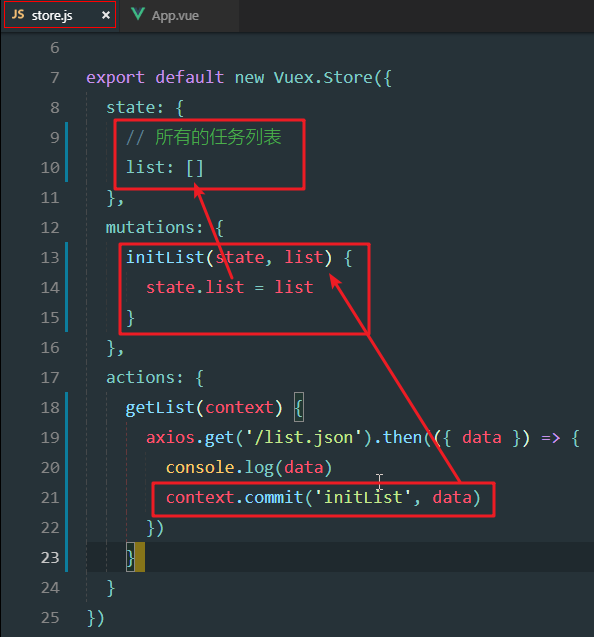 刚刚的数据,只是打印出来了,我们需要将这个数据交由store处理