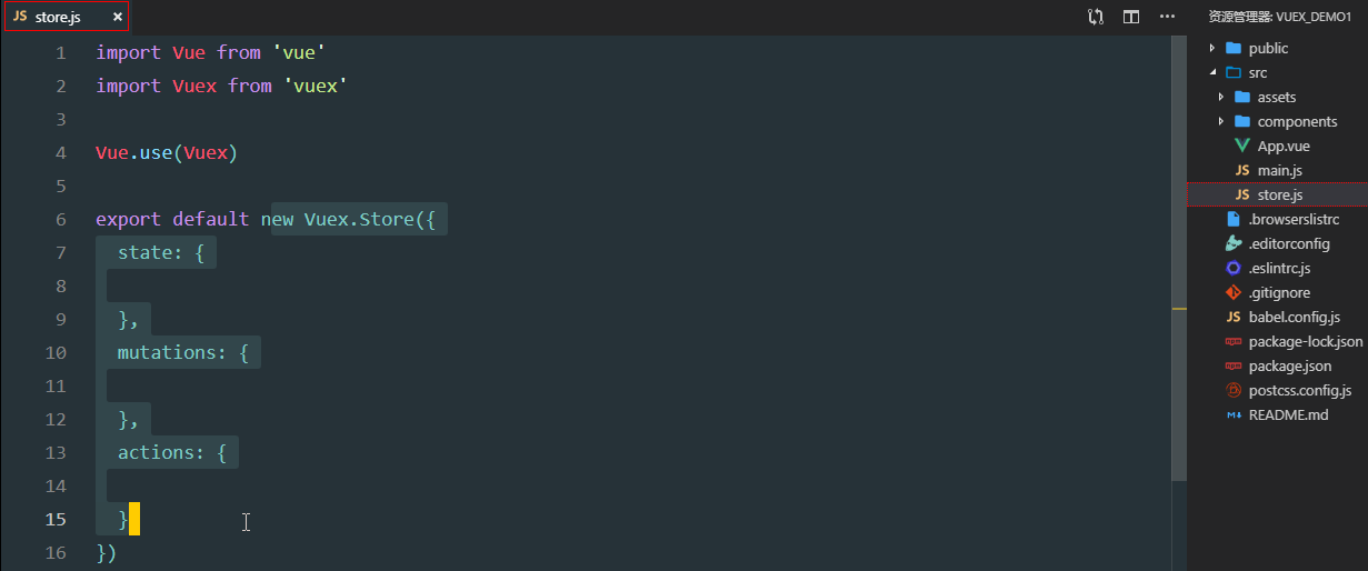 创建成功之后,默认有store.js文件