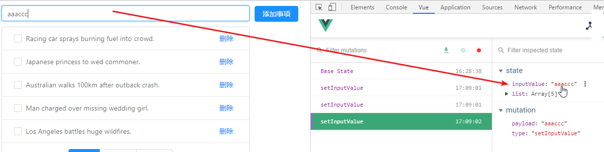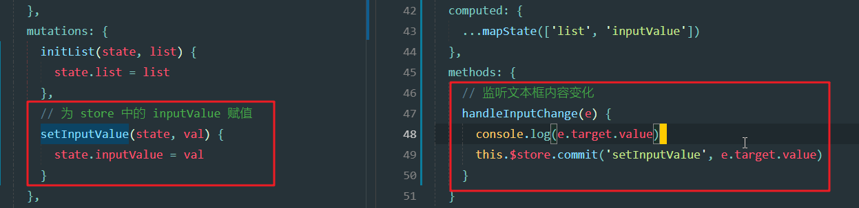 定义修改inputValue的mutations方法setInputValue,然后在handle中调用此方法