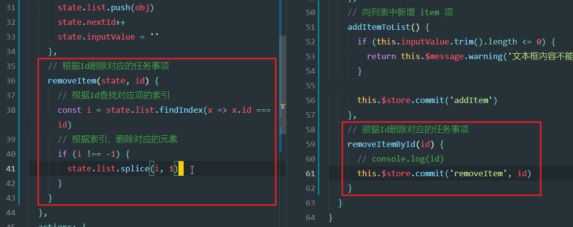 store.js中增加removeItem方法