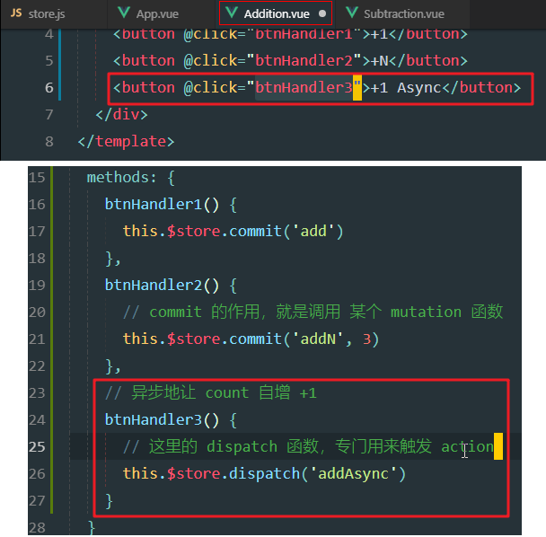异步操作都定义到actions中