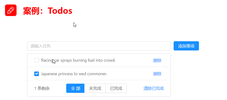 介绍:案例Todos,跟jquery中的todolist类似