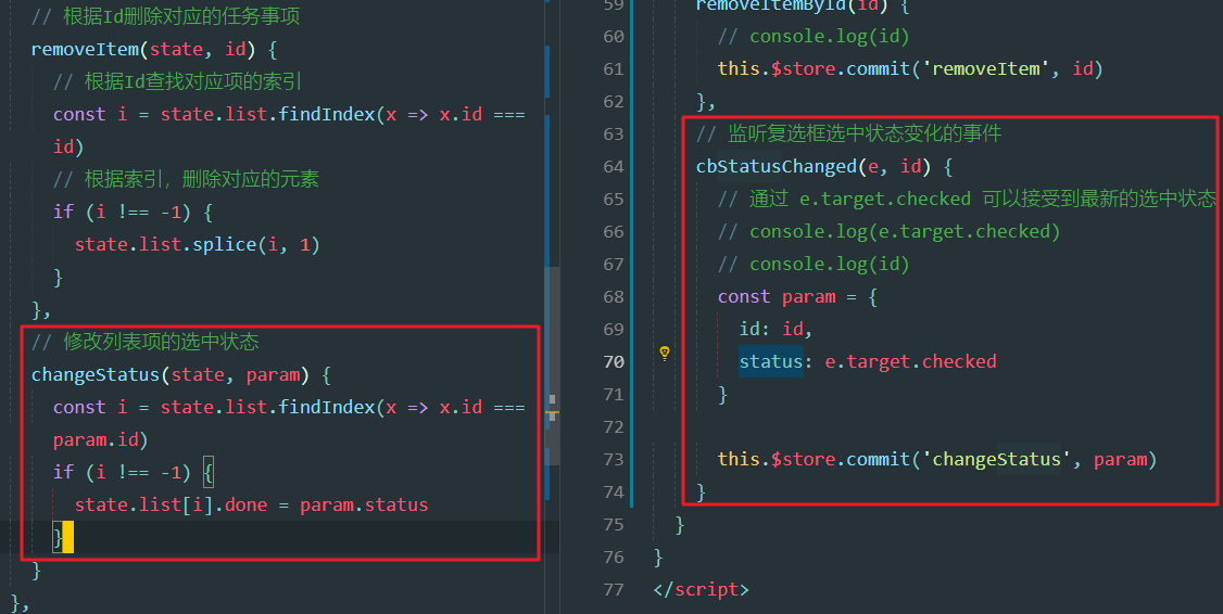 store.js中增加changeStatus方法