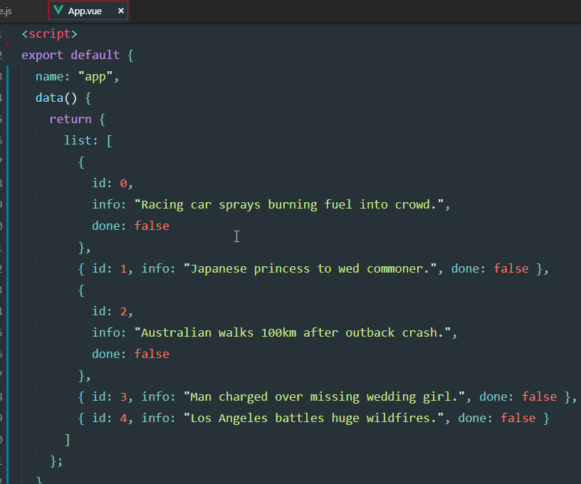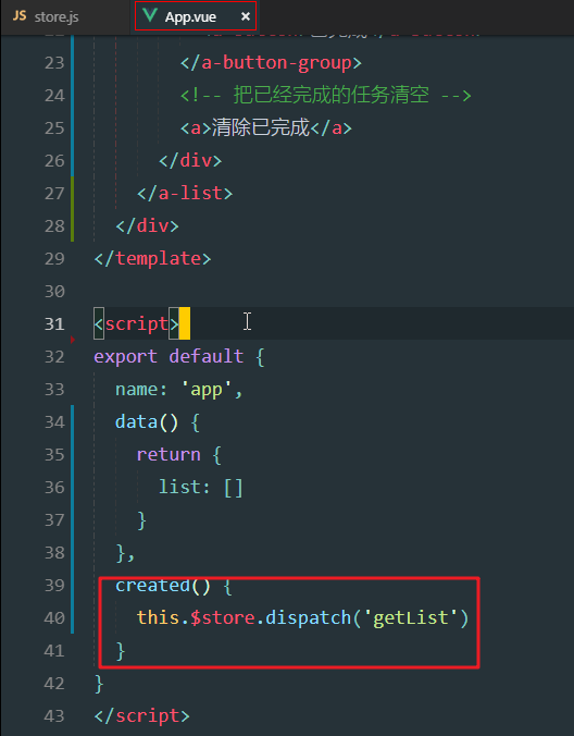 初始化代码(整个todo列表的代码):这些代码都在素材的vue-todos.txt中