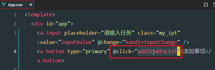 在app.vue中定义addItemToList方法