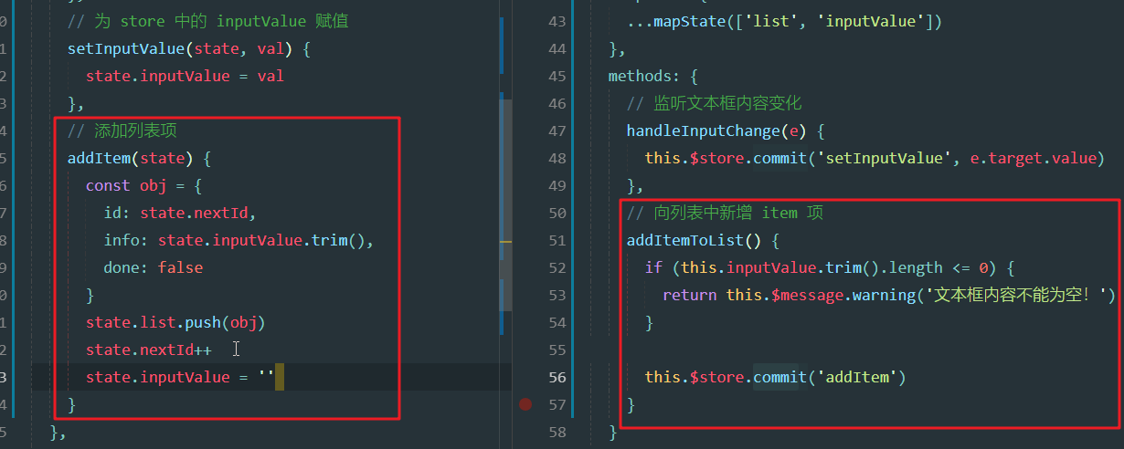 在store.js中定义addItem方法