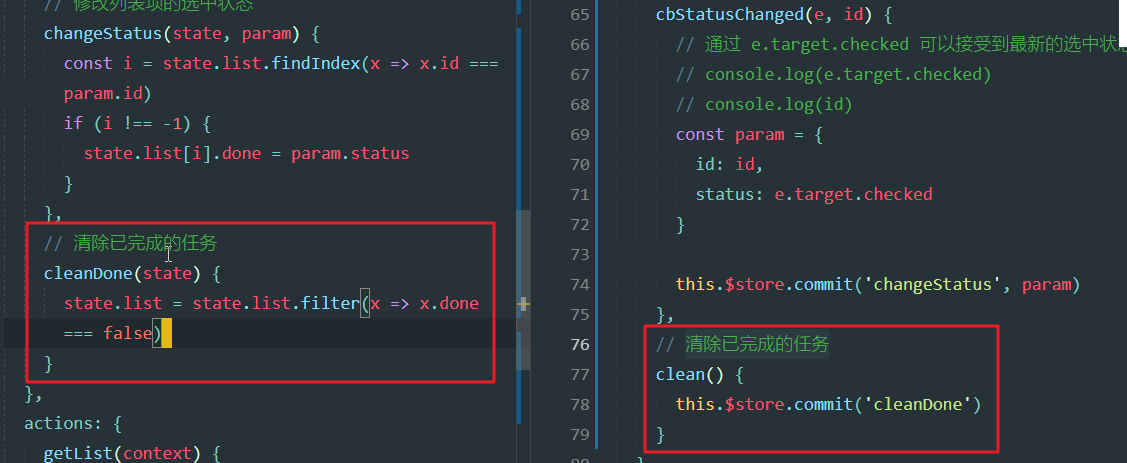 store.js的mutations中增加方法cleanDone