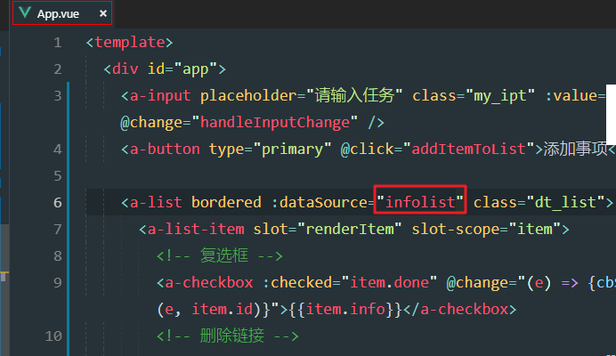 修改a-list绑定额数据源为infolist